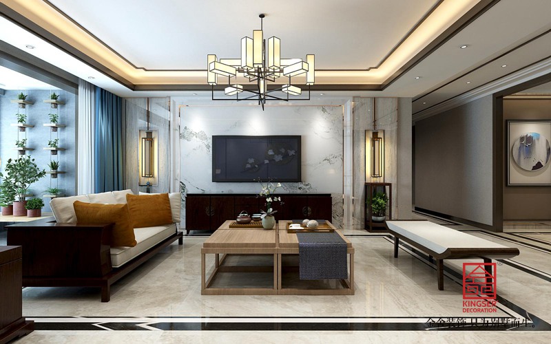 融創中心125平米-新中式裝修-客廳