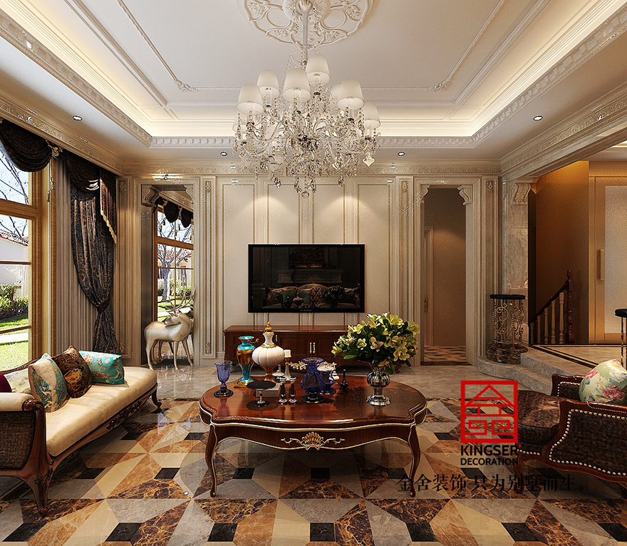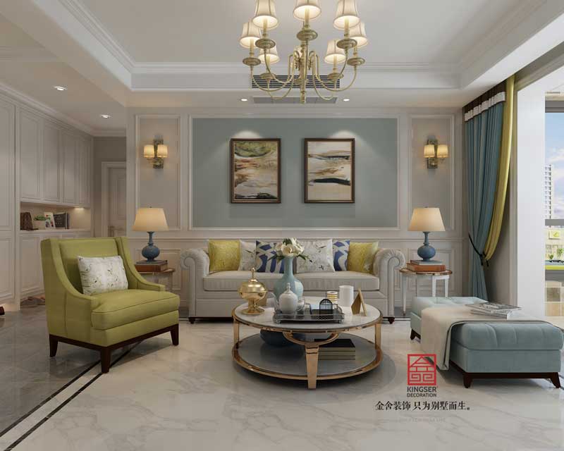 原河名墅別墅裝修-美式風(fēng)格-客廳