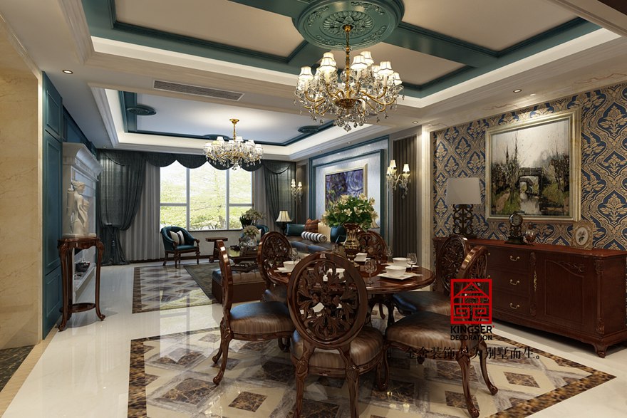 鑫界王府別墅裝修-美式古典-餐廳