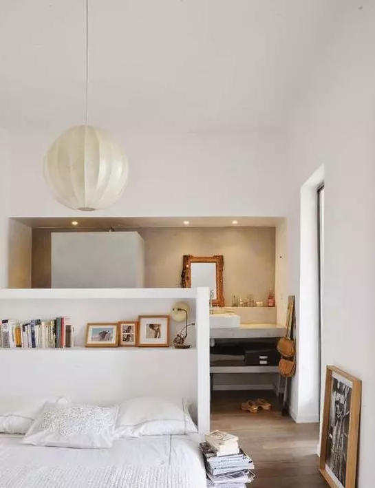 床頭與墻面空間設計一個空間作為一個梳妝臺,可以方便日常的化妝,也可以和衣帽間結合設計,但需要注意的是空間的采光。