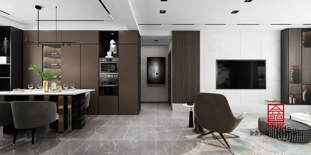 此案例為石家莊金舍裝飾-東南智匯城120平米臺式風格裝修效果圖。臺式風格體現一種大氣和對稱,表現出一種大戶人家中廳堂的感覺,方方正正,大和歸一。很多人都不懂臺式風格的設計是什么樣的,或許有些人覺得和日式風格差不多,室內設計中色彩多偏重于原木色,以及竹、藤、麻和其他天然材料顏色,其實臺式風格注重的是室內空間簡約、自然,沒有紛繁復雜的裝飾,僅用質樸的色彩加上線條感極強的設計手法,簡簡單單的感覺便能造出很有質感的空間。