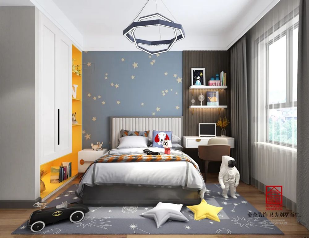 三種不同的臥室塑造三種完全不同的風格,從主臥的臺式優雅,到女兒房的溫馨可愛,再到男孩房的科技感。這是三種不同的生活感覺,也是設計能將其匯聚到一起的獨特魅力。