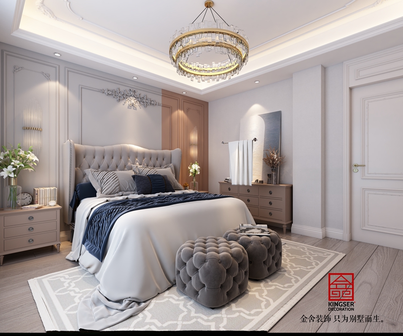 別墅的臥室是一個私人空間,需要創造一個舒適的休息環境。在別墅臥室的裝修中,可以使用柔軟的床上用品、配合簡潔、大方的家具進行布置,以營造一個兼具實用和美觀的房間環境。