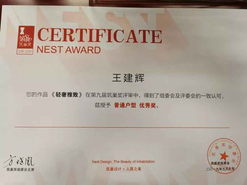 恭喜石家莊金舍裝飾王建輝設計師斬獲筑巢獎