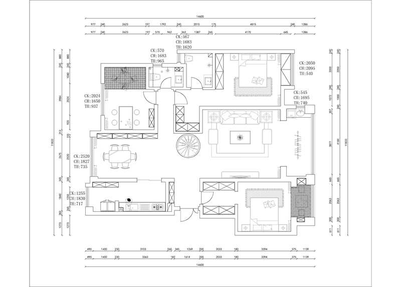各個(gè)空間戶型方正,后期空間利用率高;整個(gè)空間全明通透,采光良好,同時(shí)利于居住空間通風(fēng);從臥室進(jìn)衛(wèi)生間需要穿過餐廳或客廳;客廳、臥室、衛(wèi)生間和廚房等主要功能間的尺寸以及比例適中,有利于采光和通風(fēng),居住起來舒適、方便