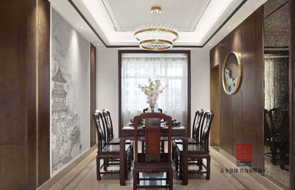 古色古香的餐廳配以單筆勾勒的墨寶,宛若徐徐展開的水墨畫卷,清雅寫意,自由而欣慰。