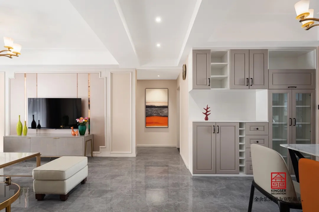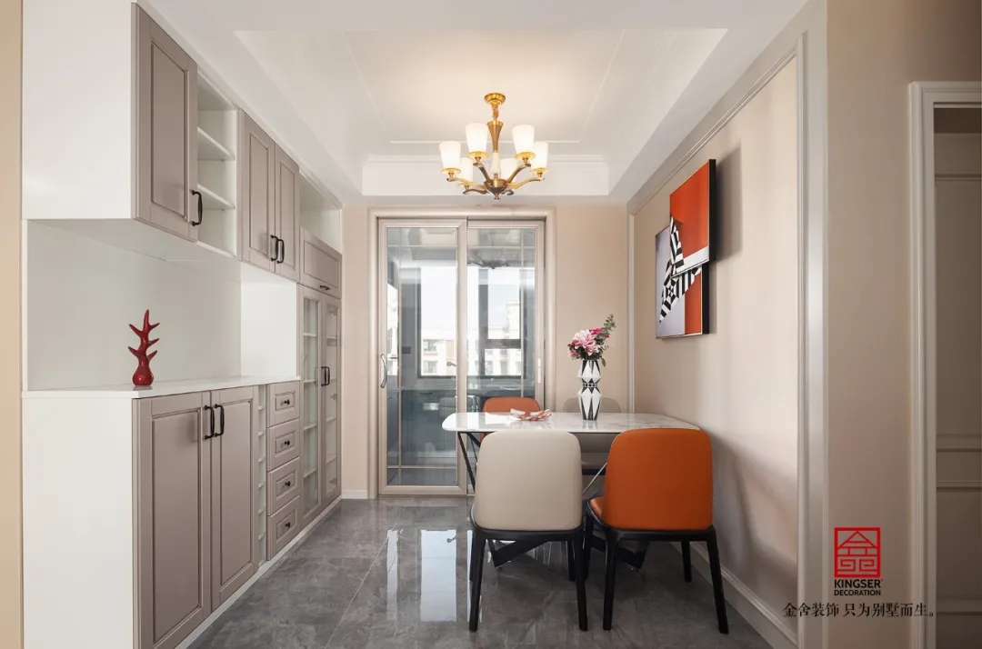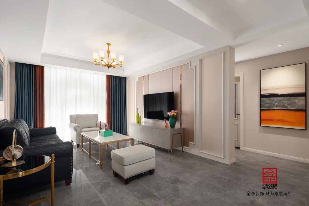 此案例為石家莊金舍裝飾-維多利亞三期120平米美式裝修實景。凡是設計,皆涉及色彩,或許濃烈而充滿激情,或許素淡而沉靜自若,陸離斑駁間,演繹出城市的性格。色彩里所蘊藏的豐富想象力,則渲染著家居生活的底色。