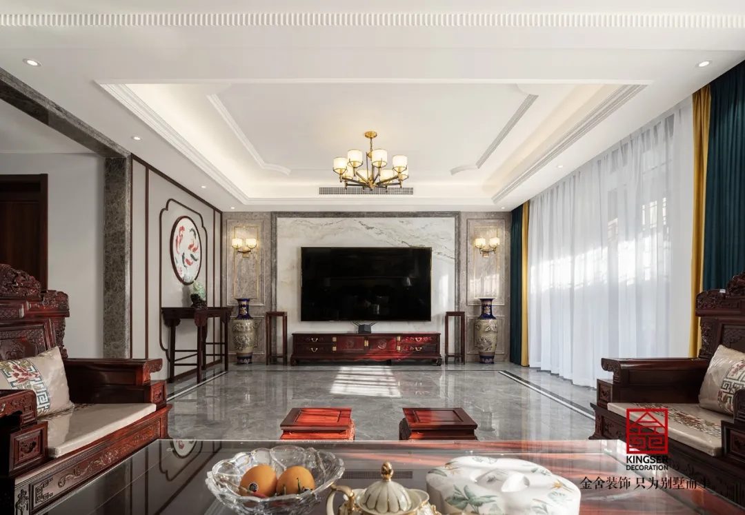 當(dāng)前位置: 首頁 > 裝修案例 > 實景案例 > 大者別墅300平米新中式風(fēng)格裝修實景