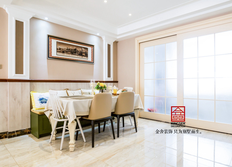設計說明:此實景案例為河北別墅裝修裝飾-天海譽天下217平米簡約美式裝修實景。空間是為人創造的,所以人是空間的主體,而不是空間的載體。正是因為有很多人存在,所以才有情感存在。空間是有情感的,但也需要有品味。