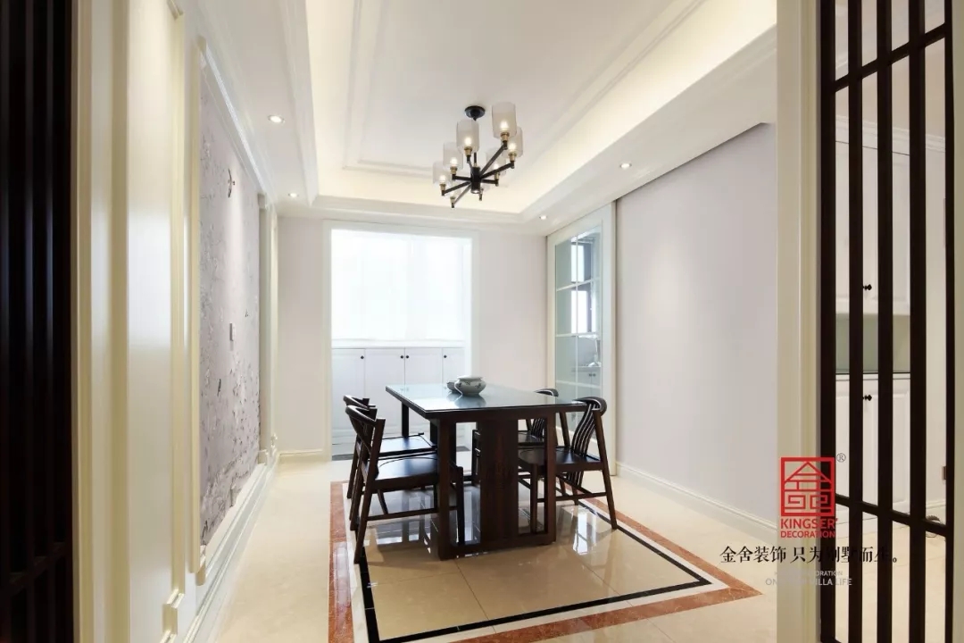 此案例為石家莊金舍裝飾-冀興尊園150平米新中式裝修效果圖。傳統(tǒng)的中式風(fēng)格裝修設(shè)計(jì)古雅、情節(jié)濃厚,而新中式的設(shè)計(jì)是將中式經(jīng)典中融入更多新的元素,巧妙的結(jié)合而成整個(gè)居室的裝修效果,讓空間內(nèi)彰顯典雅韻味而又不失時(shí)尚氣息。多種元素的共存,多種風(fēng)格的兼容,在風(fēng)格選擇上不拘一格,選取不同觸覺(jué)、視覺(jué)交織融合,存其風(fēng)骨,取其神韻,典雅而又不乏時(shí)代的積淀。