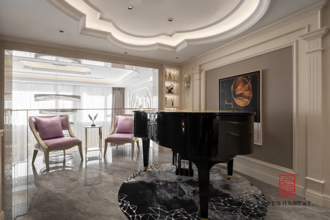 二樓中廳則設計了一個琴室,悠揚的琴聲可以響徹整個一樓和二樓的空間,給整個空間增加了一份音樂的氛圍。