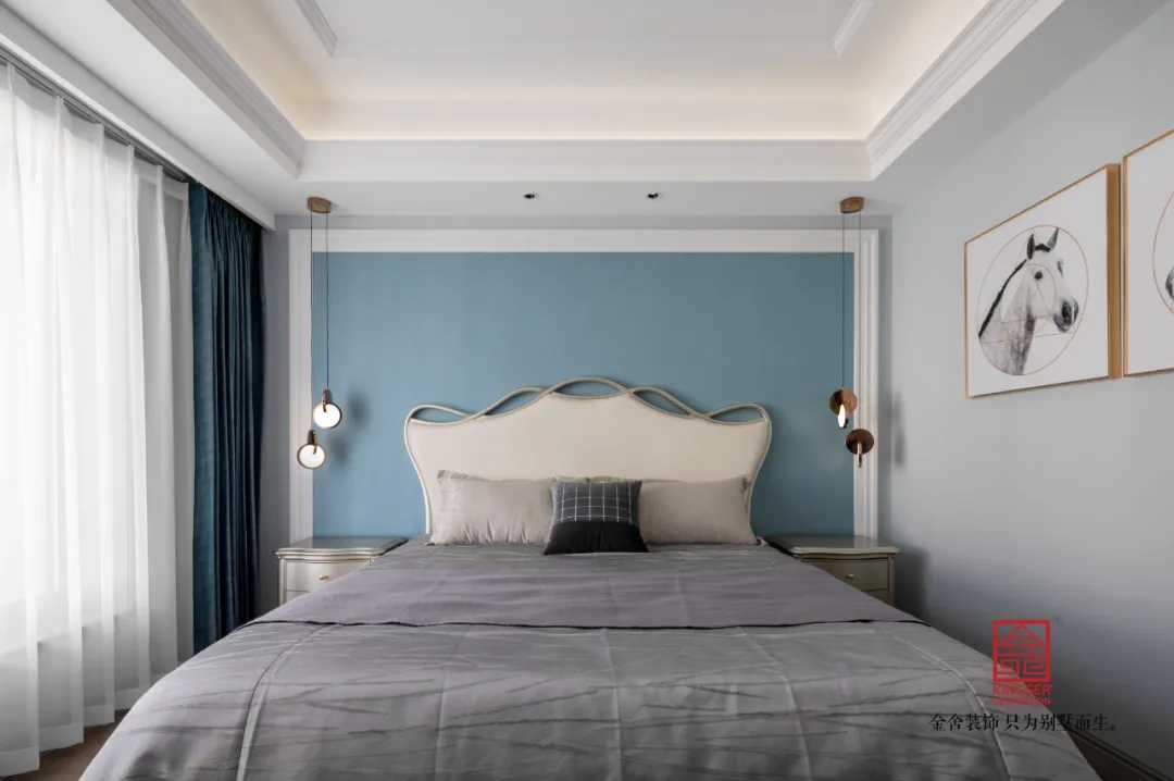 主臥的墻面以柔和的色調為主,營造出一種寧靜而溫馨的氛圍。每一處都透露出對生活的熱愛與追求。家具的線條流暢而優雅,既符合法式風格的經典特點,又融入了現代的設計理念。套間式設計,也滿足了空間內的所有功能。