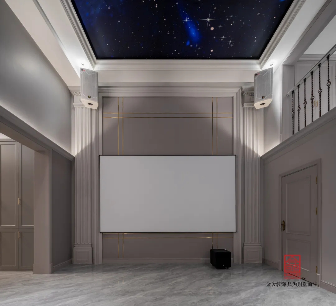 影音室作為一個專享的視聽空間,旨在為用戶提供一個沉浸式的電影、音樂觀賞體驗。設計以灰色為主色調,結合挑空空間的結構特點,打造一個既現代簡約又不失高級感的影音娛樂空間。