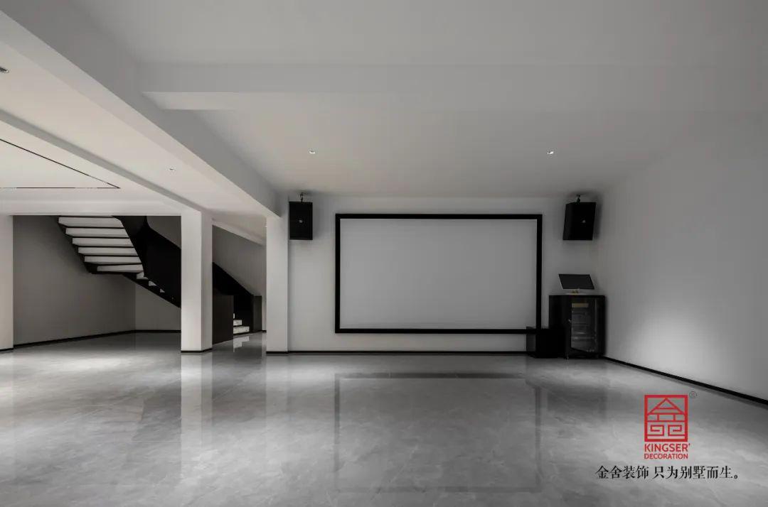 負一影音室延續了整體空間配色,就好像是正在繪制的漫畫,黑與白此時正在交替的創造著美與和諧。