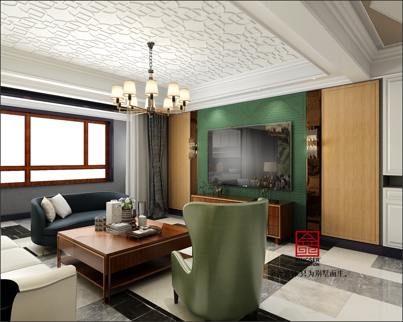 此案例為石家莊金舍裝飾-榮盛華府185平米美式風格裝修效果圖。生活中強調自由自在,隨意的不羈的生活方式,通過與業主的深入溝通,這正是業主想要的。本著輕裝修,重裝飾的原則,同時圍繞著業主對房子功能的要求,大膽又不失合理的對空間進行改造與功能劃分。在設計手法上,基于個性存于共性的設計理念,進而創新空間,在尋常家居格局里演繹經典,同時也完美的把握了空間設計中的造型。本案的設計重點是會客空間、門廳,餐廳的空間互通與交流。選用來自大自然的元素,整體舒雅的綠意,泛著高貴的清波,和著室內精煉的細節,柔軟而泛著詩意,彌漫在整個空間氛圍中,引領著另一種獨特的生活暢想。在整個獨特的空間渲染下,追憶生活的場景片段,沐浴著晨曦的光輝,自然中透著閑逸,生活亦是如此。忙碌的都市人,內心卻渴求平淡簡單的生活,那么這就是一處非常適合人居的寧靜幽美場所