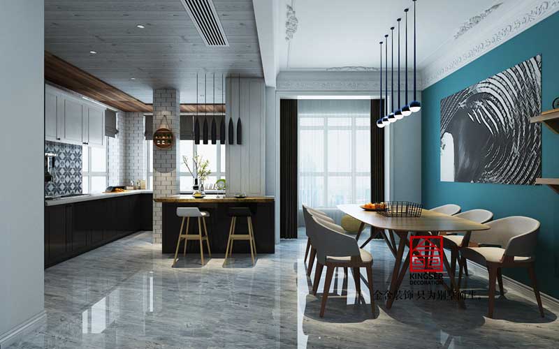 本案為石家莊金舍裝飾-如園130平米北歐風格裝修效果圖。設計貌似不經意的搭配之下,一切又如渾然天成般光彩奪目。任何一個空間,總有一個視覺中心,而這個中心的主導者就是色彩。北歐風格色彩搭配之所以令人印象深刻,是因為它總能獲得令人視覺舒服的效果,不用純色而多使用中性色進行柔和過渡,即使用黑白灰營造強烈效果,也總有穩定空間的元素打破它的視覺膨脹感,比如用素色家具或中性色軟裝來壓制。