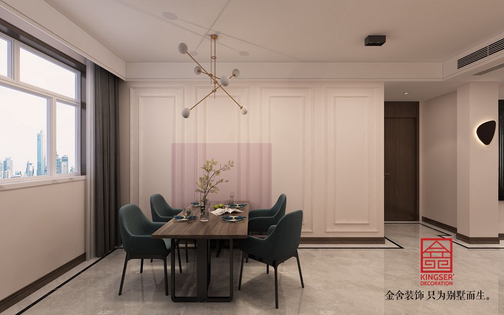 設計說明:此方案為石家莊金舍裝飾-奧北公元134平米現代風格裝修效果圖。業主為年輕新婚夫婦,對新家有無限的美好憧憬,所以在出設計方案的時候更注重顏色以及燈光的舒適度。沒有做太多復雜的造型,只是用天然石材以及護墻板的木紋紋理來襯托出現在風格的時尚氣息。地面瓷磚的鋪貼方式也沒有采用傳統的分空間區域的方式來做造型拼花,而是采用了對工人師傅施工工藝要求很高的波導線繞墻鋪貼方式,這樣從視覺感上擴大了整個空間的空間感。這樣也不會限制家具擺放的位置,后期家具進場后可以根據業主自己的使用喜歡擺放不同的角度。