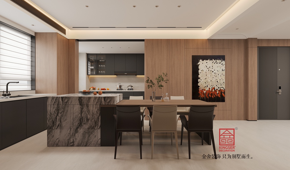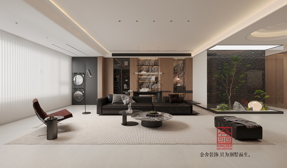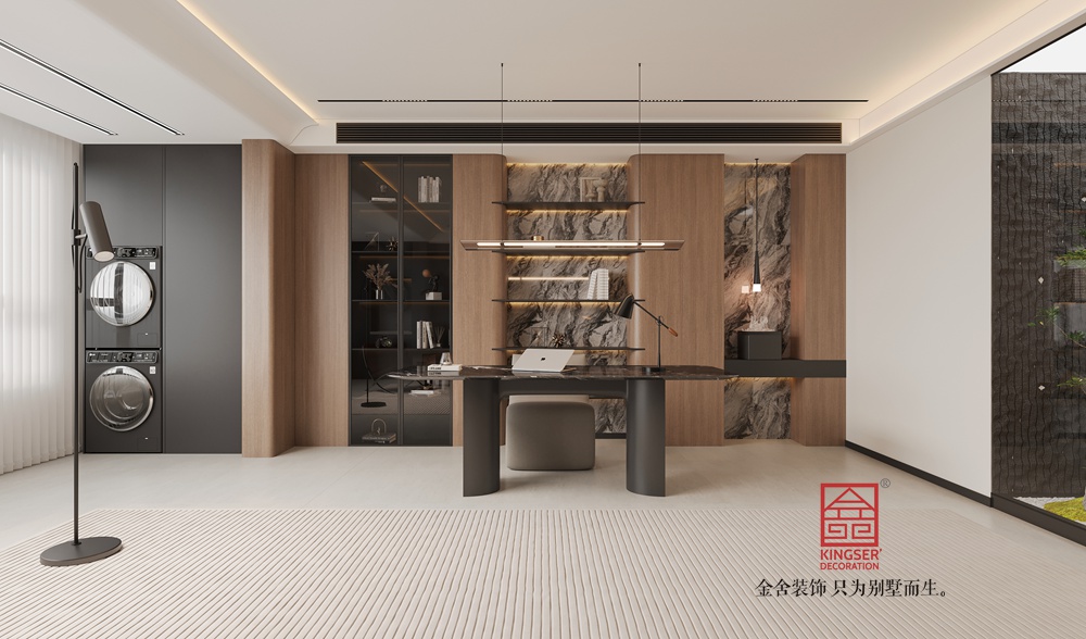 此案例為石家莊別墅裝修公司-嘉和名著230平米意式輕奢風格裝修案例。空間布局上,開放式設計打破界限,客廳與休閑、展示區流暢銜接,提升互動性與通透感。