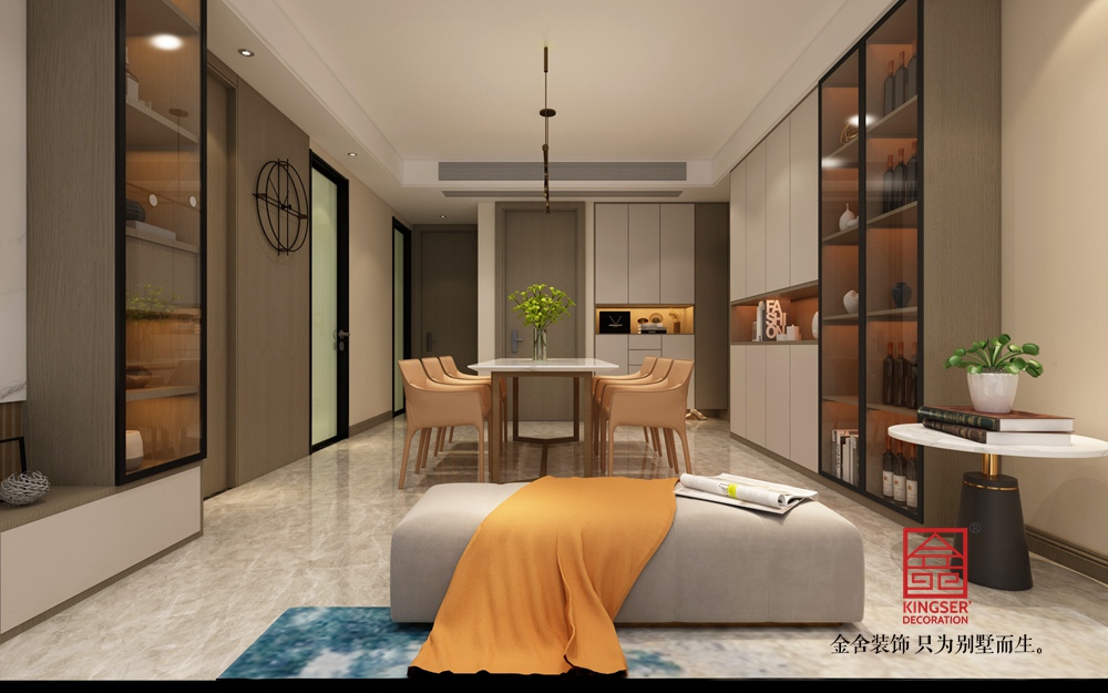 燈光設(shè)計(jì)巧妙,頂部的環(huán)形吊燈造型現(xiàn)代,與墻面的射燈共同營造出溫馨且富有層次的光影效果。整體設(shè)計(jì)將現(xiàn)代簡約的時(shí)尚感與居家的溫馨感完美融合,每一處細(xì)節(jié)都體現(xiàn)出對(duì)品質(zhì)生活的追求,打造出一個(gè)舒適、雅致且極具格調(diào)的現(xiàn)代客廳空間。