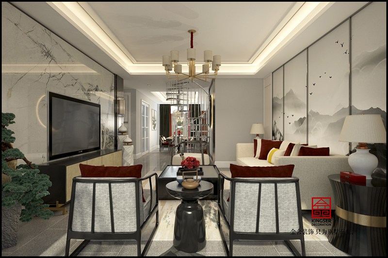 當(dāng)前位置: 首頁 > 裝修案例 > 裝修圖庫 > 金悅府220平米新中式裝修效果-客廳